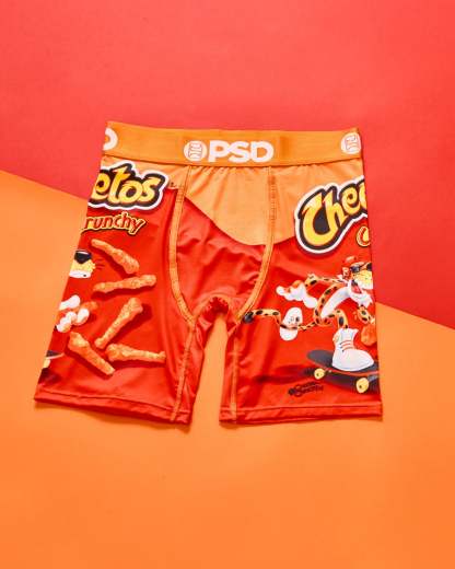 Chester-approved flavor for your drawer. From Cheetos x PSD, the Crunchy briefs include our ultra-comfortable Signature WaistBand, a breathable MicroMesh pouch, and four-way stretch. The PSD 7” Standard Length Briefs won't roll or ride and were built for everything, from everyday wear to your toughest workouts. This style comes in custom packaging that’s almost too good to open.