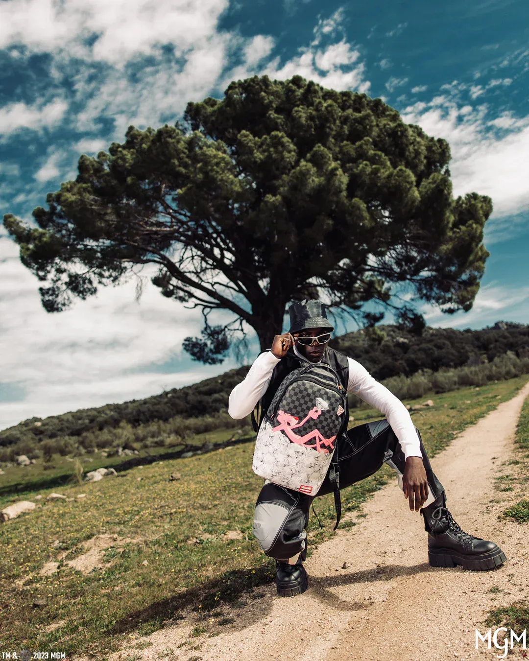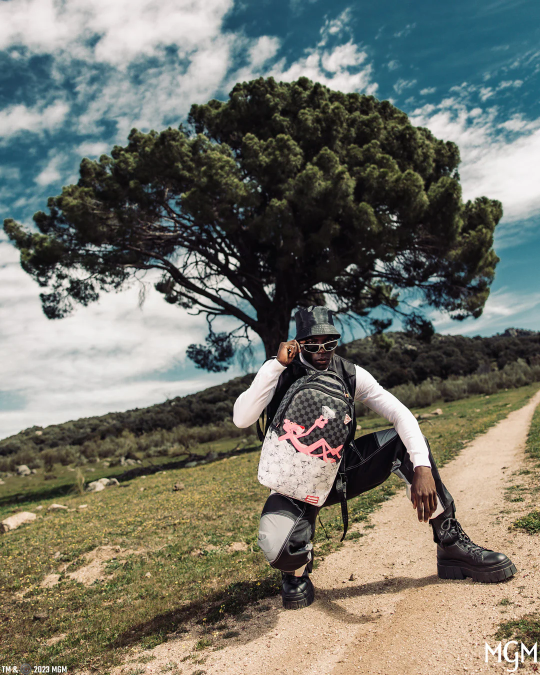 Dimensions: 18" x 6" x 11.5" • Front zipper pocket • Side pockets • Zippered Stash pocket • Separate velour sunglass compartment • Ergonomic mesh back padding • Adjustable Straps for custom sizing • Gold zippers with metal hardware • Metal "Sprayground Authentic" badge • Slide through back sleeve connects to carry-on luggage to free your hands