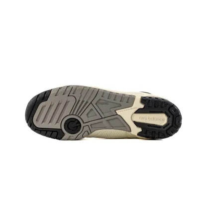 The 'Cream Black' color scheme of the New Balance 550 features a creamy beige leather upper, delivering a clean and understated look. The classic N logo on the sides is presented in contrasting black, creating a visually appealing and balanced design. The midsole, in a matching cream hue, adds to the overall elegance while providing comfort and support.