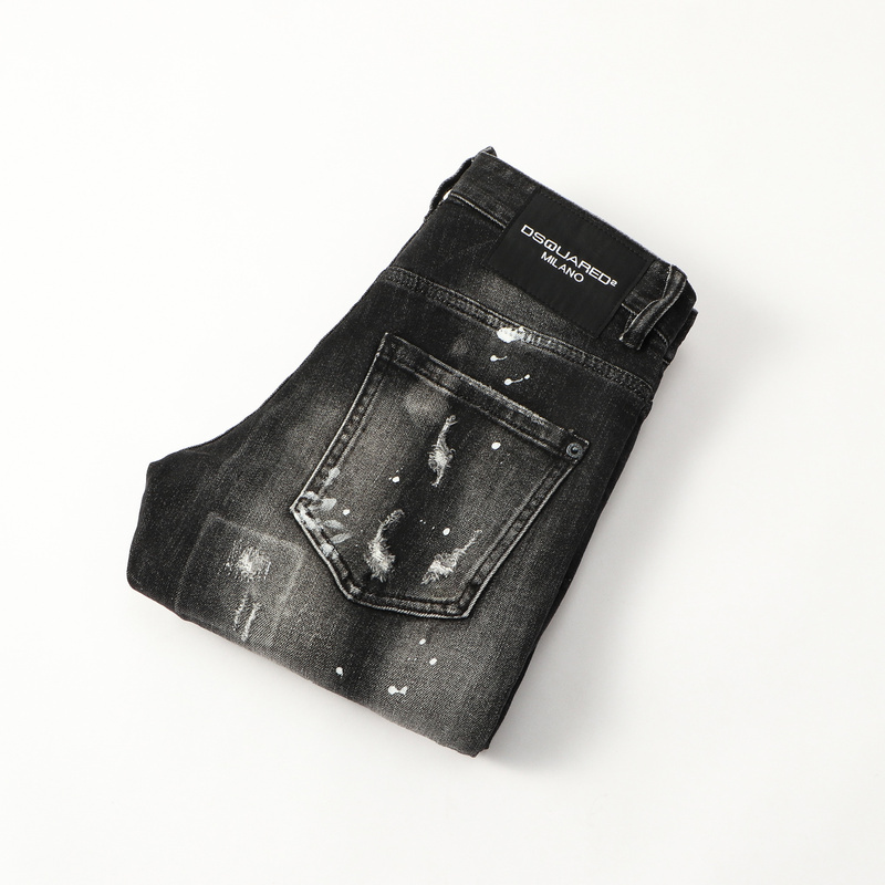 Dsquared2 Jeans gray and black tie-dye ripped denim slim pants