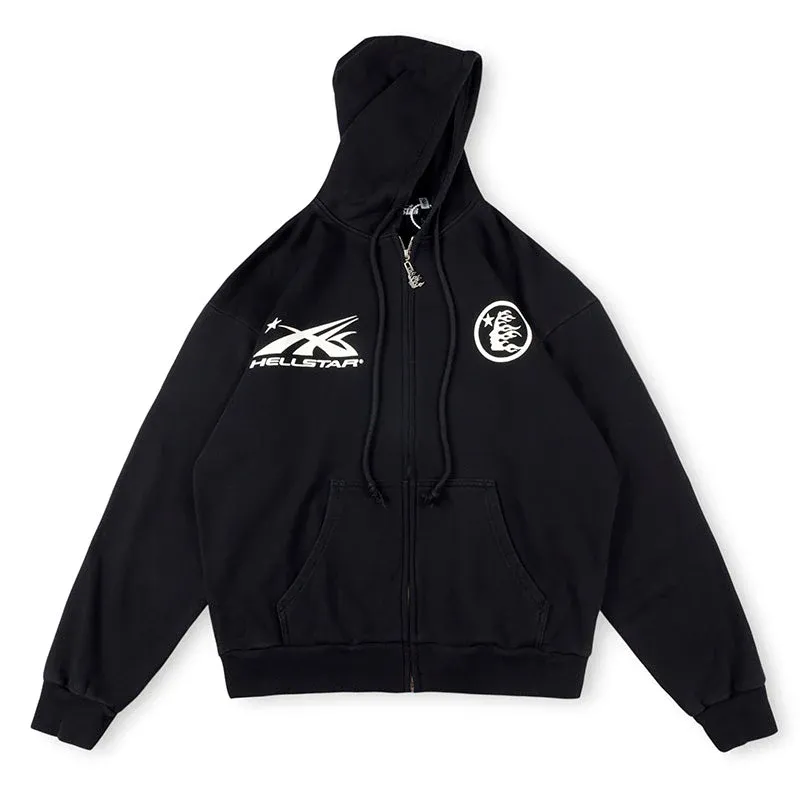 Hellstar HS Logo Zip Up Hoodie Grey