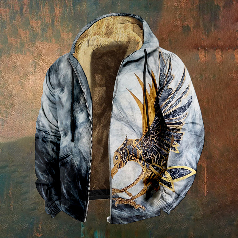 Men's Viking Celtic Raven Vintage Full Zip Hoodie