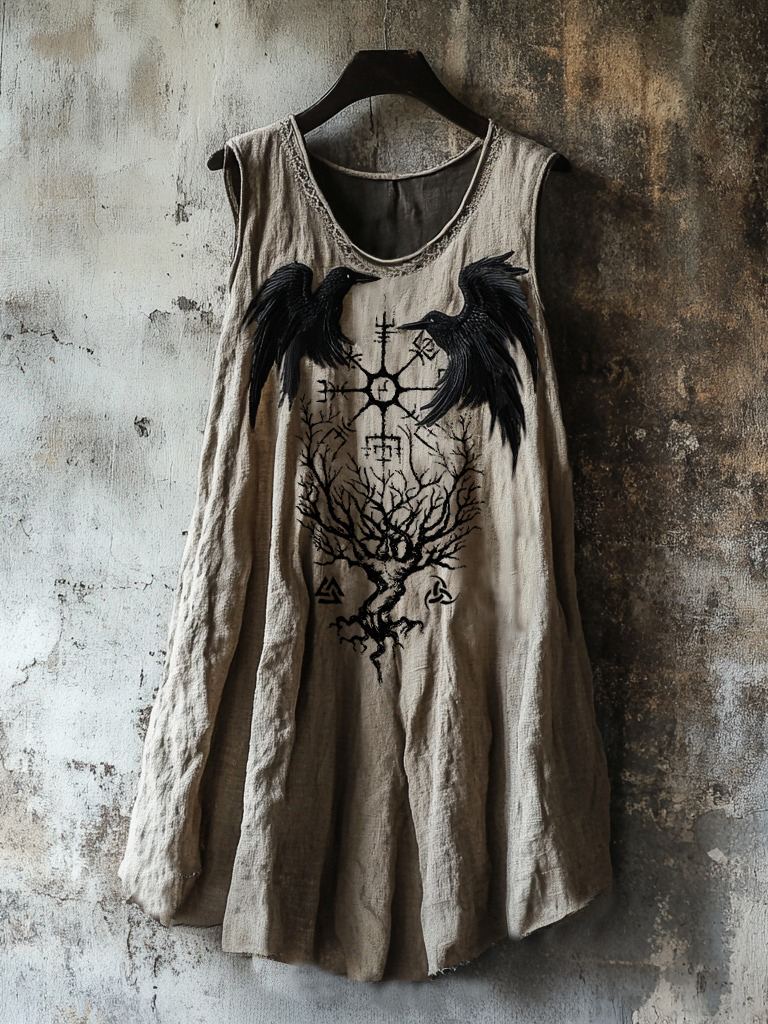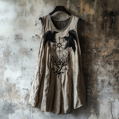 Tribal Raven And Life Of Tree Viking Runes Art Linen Blend Tank Top